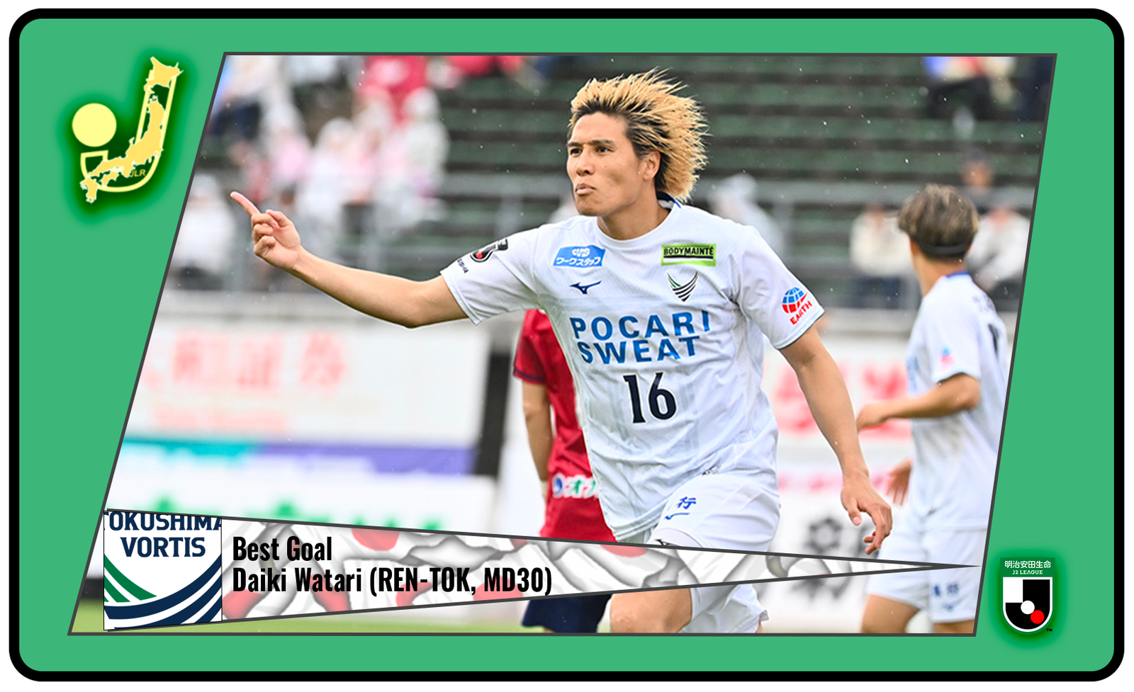 Best Goal | Daiki Watari, Tokushima Vortis @ Ehime FC – MD30 (45.5%)
