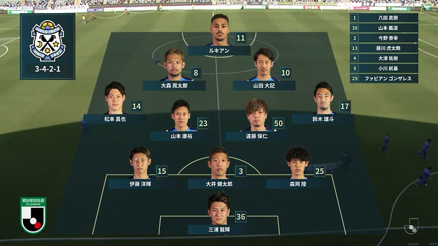 Suzuki found his line-up and he won’t renounce to that: 3-4-2-1, Ryuki Miura on goal, Matsumoto and Yuto Suzuki (!!!) as wingbacks, Omori and Yamada behind the lone striker, Lukian, who keeps benching Koki Ogawa and now Fabian Gonzalez. The guests counted on the usual 4-4-2, but benching both Ohashi and Shimazu, fielding Rodolfo as a left midfielder and Motozuka on the midfield.